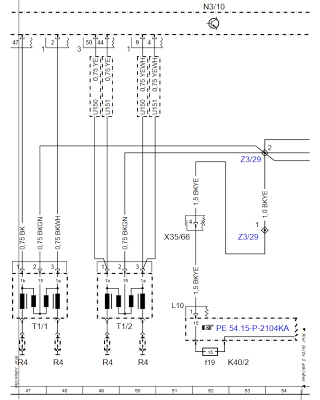 Legende: U150 gilt für M112.937 SL350, U151 für M113, Z3/29 Endhülse Klemme 15, gesichert siehe Typen-/Aggregateübersicht |