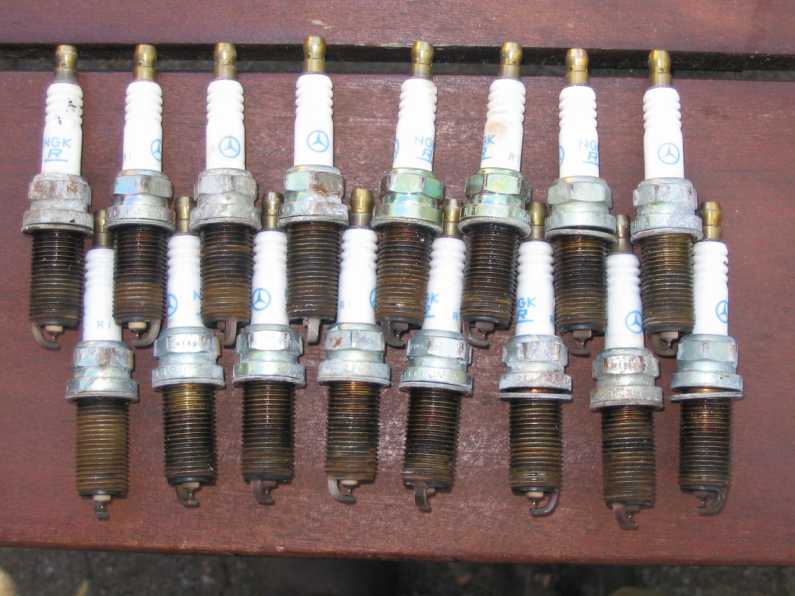 Im Vergleich mit einer Zündkerze (Bosch, W8AC) beim VW-181-Kurierwagen (Kübel, 1. Bild) mit Unterbrecher-Zündung hat die Zündkerze für den M113.993 bzw. M113.992 eine sehr feine Elektrodenspitze. Die Zündkerze A0041591303 ist bei allen Kompressormodellen verbaut, z.B. beim G55AMG, Sl55AMG, CL 203, CLK 200 CGI oder E 200 NGT usw.. Auch beim SLR MCLAREN 5.4 (R199), BM 199.976 mit 626 PS ist diese Zündkerze eingebaut. |