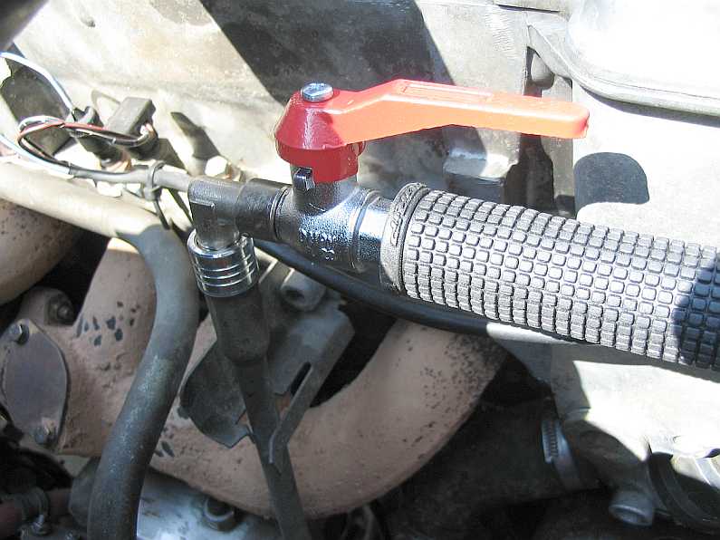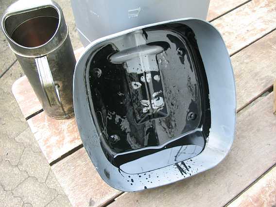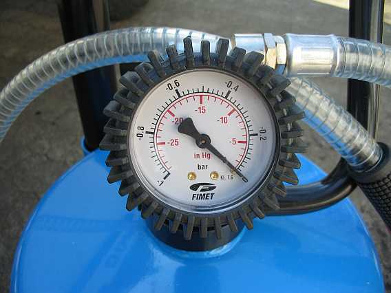 | 4.1 Absaugen (Öl warm): Mit dem direkt in das Ölmessrohr gesteckten Absaughahn können über 5 Liter Öl abgesaugt (Ölstand war niedrig) werden. Danach ist der Unterdruck im Gerät auf Null. | ![]() |