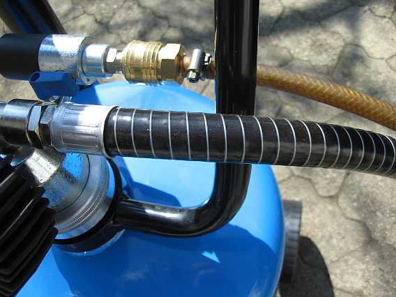 Die Messingrohradapter werden nicht benötigt. Also das Messingrohr (6 mm Außendurchmesser) 10 cm nach dem Anschluss absägen. Ein 100 cm langer Polyamid-Benzinschlauch passt auf das Messingrohr. Als Verstärkung gegen Abknicken hilft ein Stück Pressluftschlauch. Nun kann auch bei der Mercedes-B-Klasse (B200) und beim SL55AMG abgesaugt werden. Beim SL55AMG müssen dann wegen der zwei Ölwannen doch die zwei Ablassschrauben entfernt werden. |
