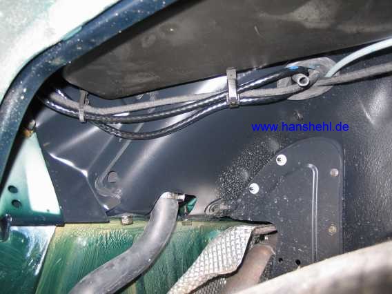 am Kühler befestigen anstatt auf der Rückseite im Kühlergrill unter den Stegen durch zu führen.