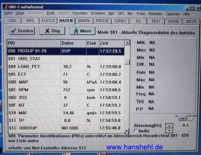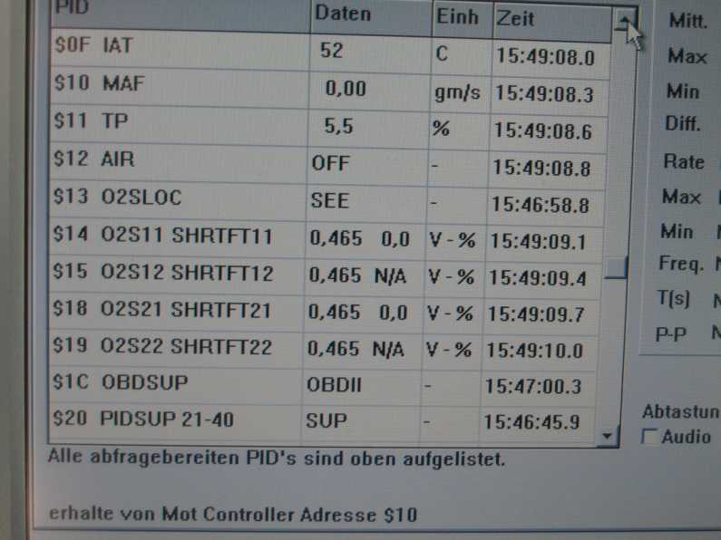 und dann bei höherer Drehzahl ermittelt. Die Abkürzungen fand man auf www.obd-2.de erklärt (Technische Informationen):