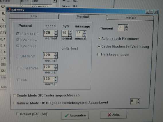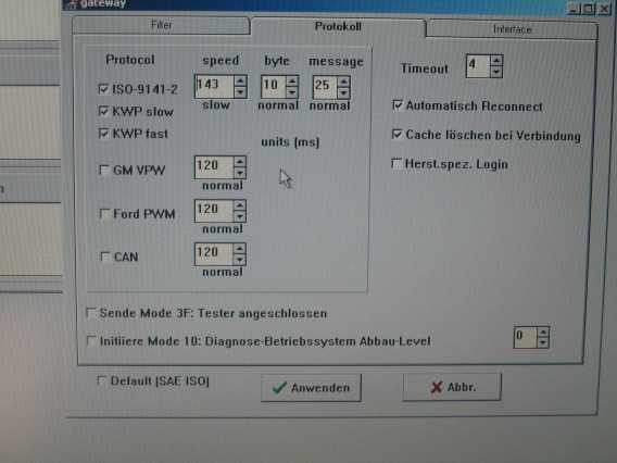 Verbunden wird mit dem Protokoll ISO/DIS KWP2000-4 fast.