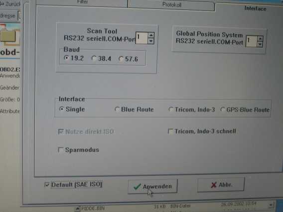 2. OBD-2-Kabel an OBD-2-Steckdose und an serielle Schnittstelle am Notebook anschließen.