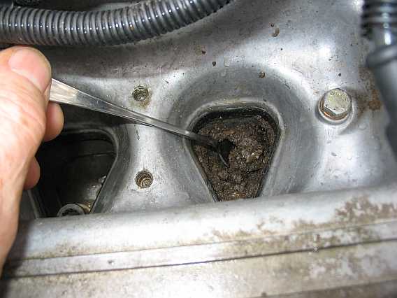 | Die Vertiefungen waren mit Schlamm aufgefüllt. Nach der Säuberung (auch der Kerzenstecker), lief der Motor wieder vibrationsfrei. Eine Abdeckung wäre zu überlegen. | ![]() |