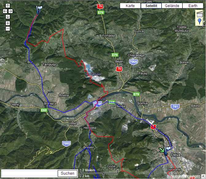 Das war zwar gut gedacht, aber wir fanden den Einstieg in die Strecke nicht mehr. Bis 300m kamen wir wieder an unseren Wegepunkt heran. Die Strecke führte anscheinend nicht zum Gipfel, sondern querte den Hang weiter unten. So machten wir eine Offroad-Tour auf eigene Faust zunächst auf dem Hügel und waren fast 94 km in den Karpaten unterwegs. Da verlor ich auch die CB-Antenne. Ein Abstecher nach Deva zum Tanken und Essen war der Abschluss. Von 31 Fahrzeugen kamen 13 nicht ins Ziel. (siehe TAT-Liste: hobby-team59-day2 .pdf). |