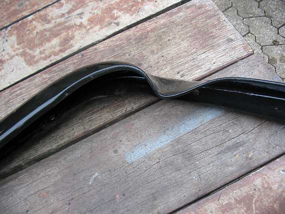| Bei einem Baumkontakt federte der 10 mm dicke Heckwindenträger und die Winde hinterließ eine Beule im Querträger. Also muß die Winde mit zusätzlichem 2 cm Abstand zum unteren Querträger montiert werden (siehe Bericht im Tipp95-2: Heckseilwinde, Abschnitt 6.4). | ![]() |