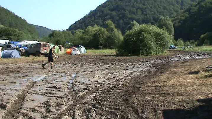 Die Wasserversorgung aus dem Bach erfolgte unterhalb der Furten. So war oft trübes Wasser in den Duschen und bei den 6 Wasserhähnen für über 200 Leute! an dem einen Waschbecken vorhanden, da alle Starts von Extreme und Hobby über die Furten erfolgten. An einem Tag fielen die Duschen und die Waschgelegenheit ganz aus. |