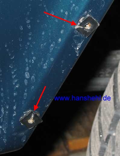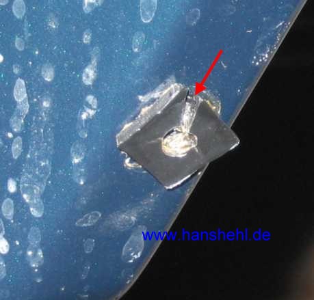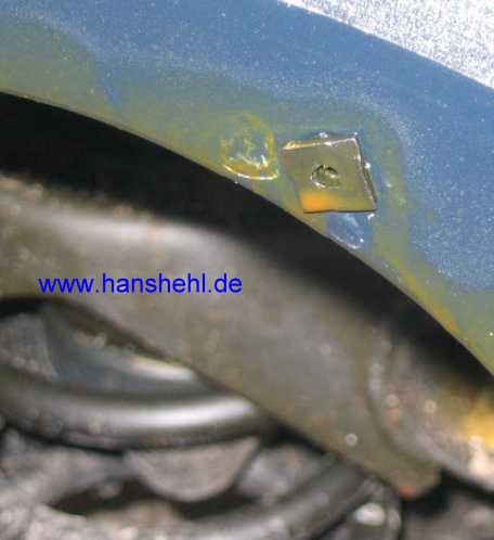 | 19. Kein Korrosionsschutz: Kein Korrosionsschutz findet unter den Innenkotflügeln statt, wie im tipp21.htm beschrieben. Dort sind weitere Beispiele aufgeführt. So ist die Halterung der Scheinwerferabdeckung einfach mit 3 Blechschrauben befestigt. |