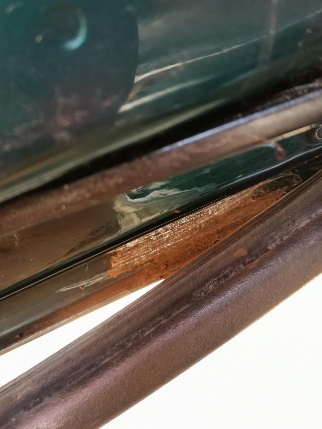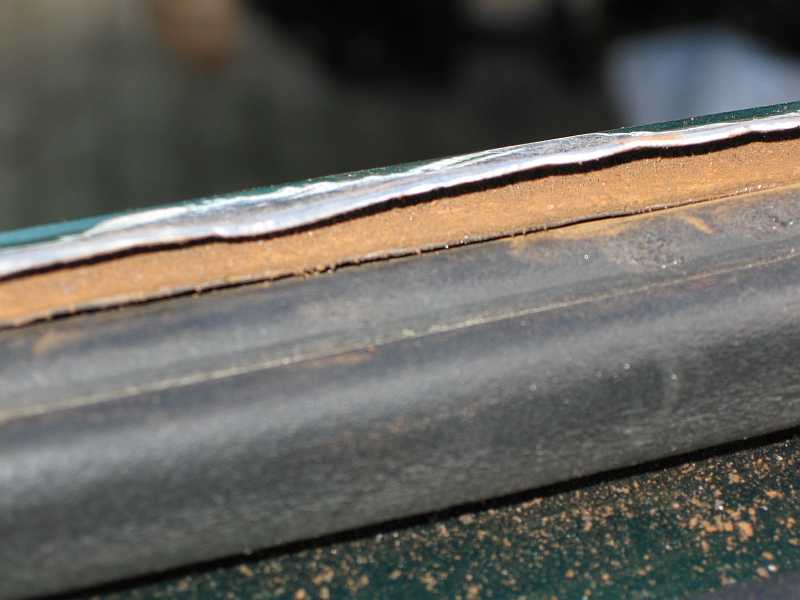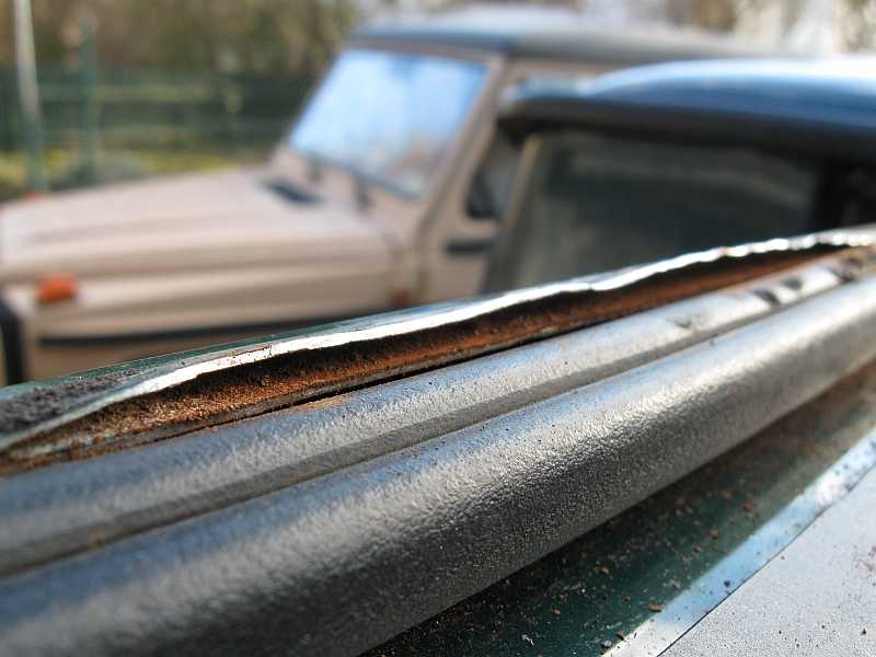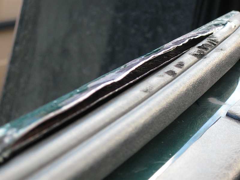 ![]() Die äußeren Abdichtgummies der Seitenscheiben in den Türen sind an den Enden etwas zu kurz. Da dringt dann Wasser in die Türen. Diese Lücken schließt man mit schwarzer Knetmasse. |