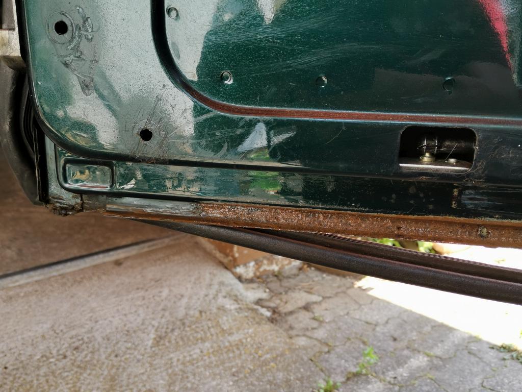 Am 15. Juni 2023 fand bei Km-Stand 122871 die TÜV-Untersuchung (TÜV-Süd, Herr Hötzinger) bei einer Kfz-Werkstätte in Wartenberg statt, die in 20 Min. erledigt war: Fazit: alles bestens (TÜV-Bericht). Danach zeigte mir der Meister, dass an der Hecktür der untere Falz für die Türdichtung schon ziemlich verrostet war. Da hatte ich anscheinend 2006 den Türgummi unten nicht abgezogen und den Falz mit Wachs nicht konserviert. |