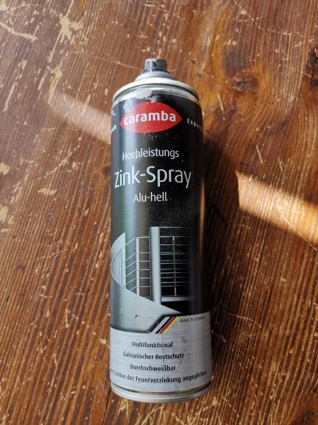 Jessy störte das Sandstrahlen überhaupt nicht. Nun wurde zweimal mit Brunox der Rost versiegelt. Nach Trocknung kann mit Zinkspray (galvanischer Korrosionschutz) gestrichen werden. |