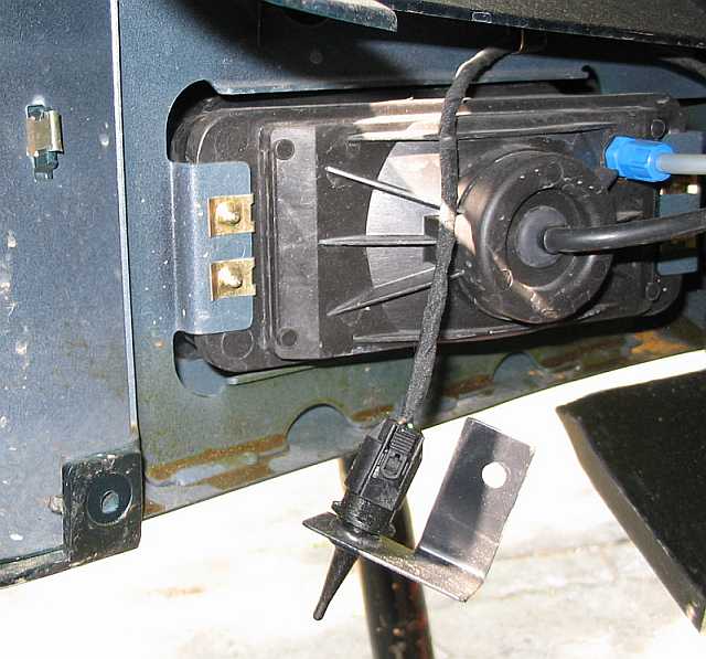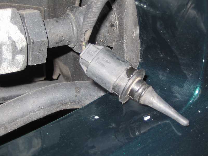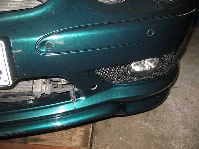 Temperaturfühler Außentemperaturanzeige: AR54.30-P-6341R Je nach Lage des Fühlers kann man entweder unten die mittlere oder linke vordere Motorraumverkleidung ausbauen AR61.20-P-1105R. Bei meinem SL55AMG, 230.474 (7/2002, erste Einbauvariante) clipste ich einfach das vordere mittlere Lüftungsgitter im Stoßfänger aus, als ich die Ladesteckdose einbaute. | ![]() |