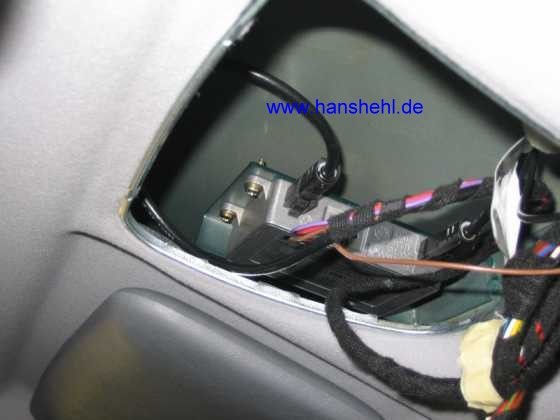 mit einem 10-poligen Telefonstecker. Durch ein Loch im Handschuhkasten kommen das Antennenkabel und die