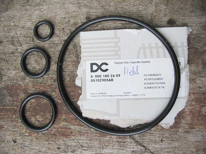 Die vier Dichtringe werden durch neue ersetzt (beim Ölfilter dabei). Der große Dichtring kommt in die obere Nut (siehe Beipackzettel). |