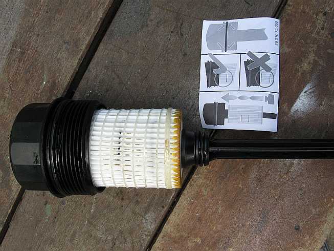 | Der Filter muß auf den Halter mit etwas Kraft bis über den oberen schwarzen Strich aufgeschoben werden. | ![]() |