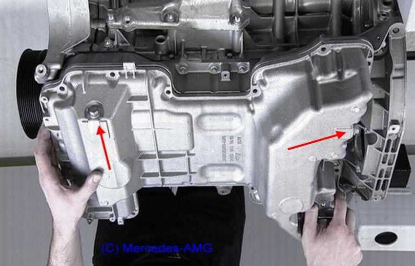 Beim SL55AMG (230.474) darf das Motoröl laut Mercedes nicht abgesaugt werden, da die Ölwanne zweiteilig ist. Das Absaugrohr führt nur in den vorderen Ölwannenteil. Im hinteren Ölwannenteil verbleiben fast zwei Liter Altöl. Jeder Ölwannenteil besitzt eine eigene Verschlussschraube. Es dürfen nur frei gegebene Motoröle SAE 0W 40 oder 5W 40 verwendet werden, Blatt 229.5 mit Fußnote 2: AMG-Motoren, siehe AP18.00-P-0101R von 24.02.2016 Beim SLR ist sogar nur 5W-50 vorgeschrieben! |