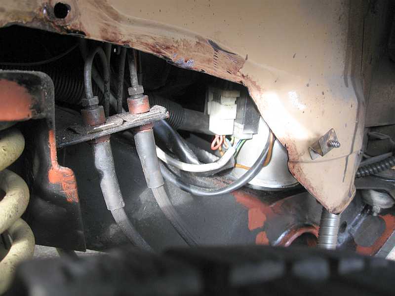 Das Radlaufblech habe ich etwas gekürzt, so kommt man besser an die Stecker von der Heizung und auch an die Bremsleitungsverschraubungen. |