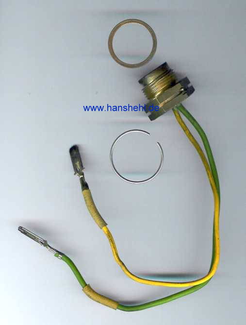 A0008353879 - nicht mehr lieferbar Typ ELMWOOD 2455RBV, M4-Gewindestutzen, der Kontakt öffnet bei 90 - 95 Grad C Wassertemperatur und ist unter 66 - 57 Grad C. (Sollwert 70 Grad C.) geschlossen. Kontakt C/6 u.C/7, schaltet Plus zum Magnetventil (3.3), regelt die Heizung durch Aus- und Einschalten der Brennstoffzufuhr mittels Magnetventil (3.3). Es gibt einen fast baugleichen Regelthermostat bei Fa. Bürklin (Tipp von M.Bomers). Die Befestigung, sowie die Temperaturhysterese passen. (90/60°): www.buerklin.com, Suchwort "Temperaturschalter" Nr. 30G432 |