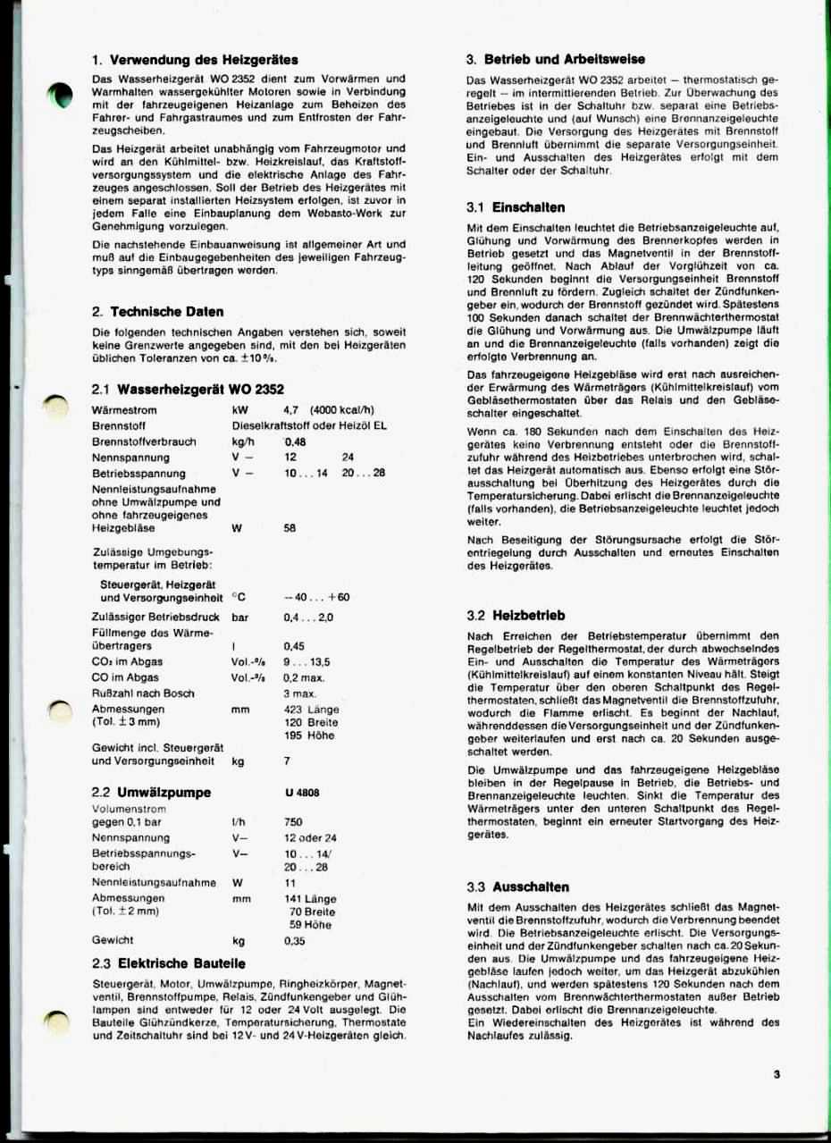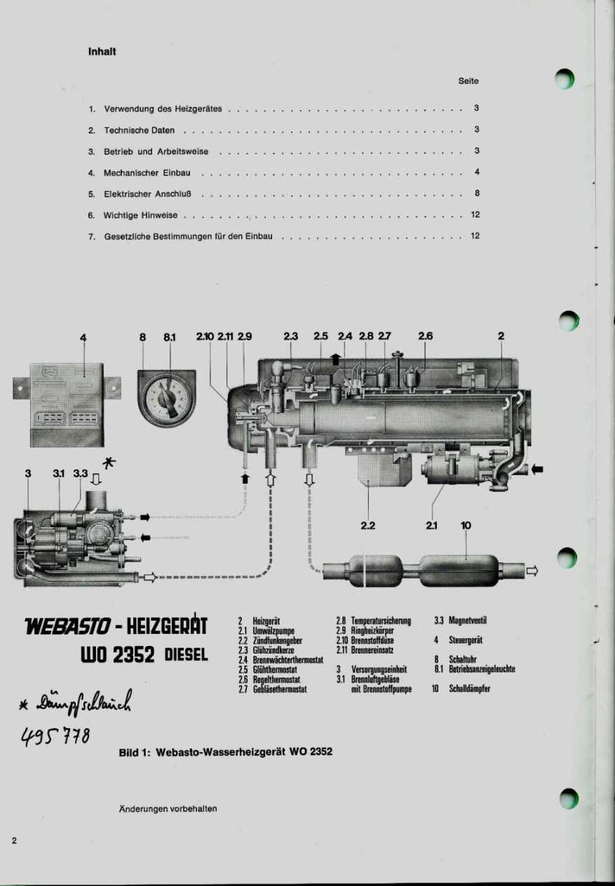 | Standheizung WO2352 | Betriebsanleitung 1978 | Betriebsanleitung 1978 | Teileübersicht WO2352 | Teilenummern WO2352 | Teileübersicht VE |