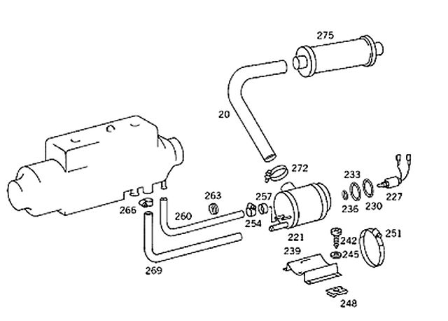 Die Webasto LO 2305 ist eine Warmluft-Standheizung und in einigen Teilen der WO2352 sehr ähnlich. Sie ist z.B. im Mercedes-Benz-Bus MB 208D-KB, Bremer T1 Kasten, Bj. 1989 eingebaut. Th. Meier hat die Reparatur seiner Luftheizung LO2305 hier beschrieben. |