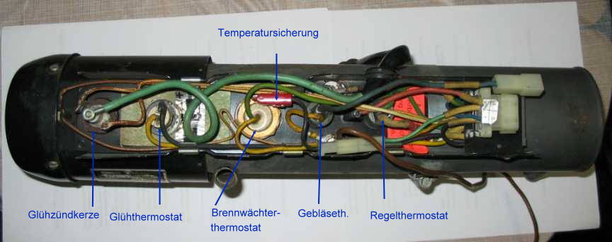 Glühthermostat | Steuergerät | Gebläse- u. Regelthermostat | |