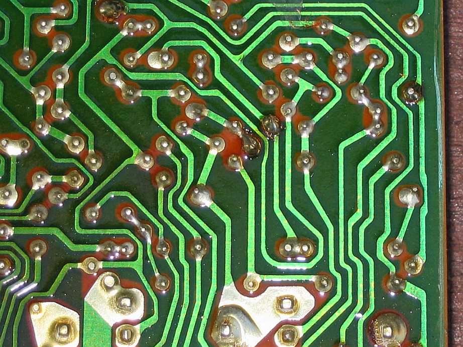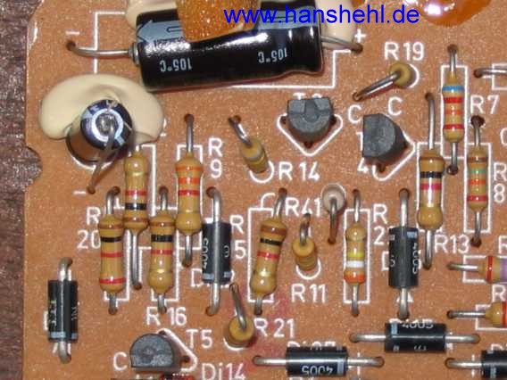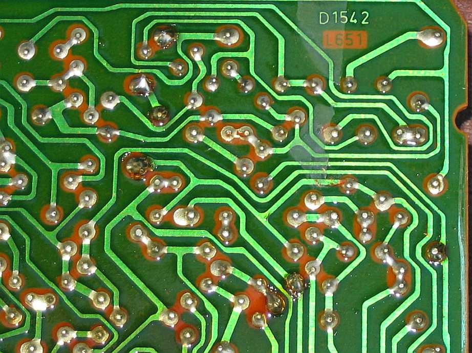 Die drei großen Elkos 220/16V µF sind nach über 30 Jahren defekt, wie ein Bild von einer Steuergeräteplatine zeigt (2.Bild, Danke St. Lindemann). |