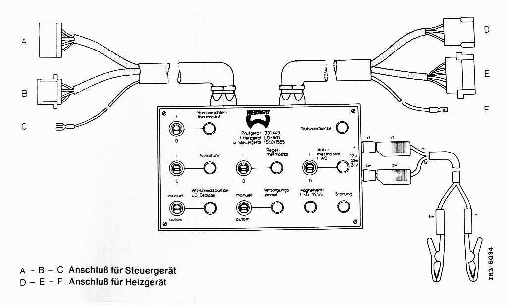 | Versorgungseinheit | Gebläsemotor und Magnetventil | Gebläsemotor und Brennstoff-Pumpe | Gebläsemotor, Pumpe offen | Gebläsemotor allein | Brennstoffpumpe |
