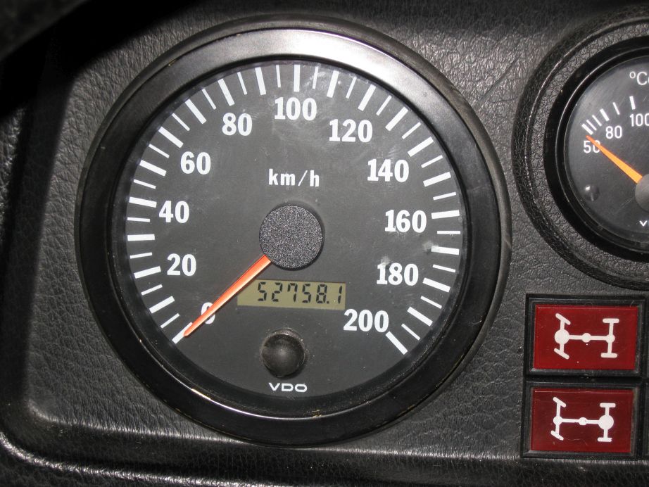 Im Juli 2005 hatte Robert Schüler (Besitzer eines Pinzgauers, ist ja ein Steyr-Puch wie der G ;), dies getestet, als er den Tacho ersetzte. Sein Bericht ist auf seiner hervorragenden Webseite https://pinzgauer.kiruna.de/technik.html mit Bildern zu finden. Er stellte sich selber den Tachostand ein (man kann die Anzeige nur erhöhen). Die Einstellung machte auch die VDO-Vertretung, aber 2016 nicht mehr. |