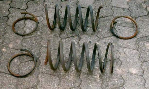 Beim G brechen meistens die Hinterachsfedern mit der Kennung grün, wobei eine oder beide Windungen am Federrand brechen (1.Bild). Bricht die Feder dagegen in der Mitte, schlitzt es den neuen Winterreifen auf, wie es "Unitrac" ( www.off-road-forum.de ) passierte. Aus- und Einbau der Federn beim G: Tipp10 |