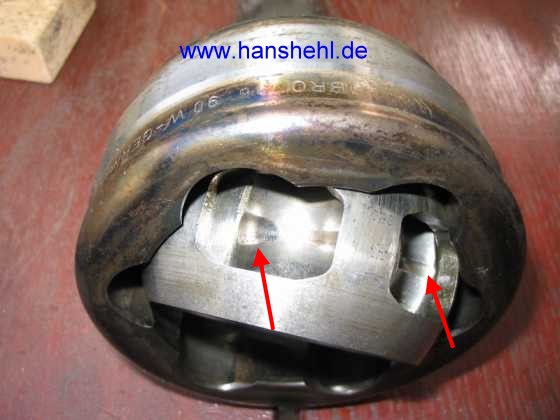 | Durch Überbelastung | zerstörte Verzahnung | und Gelenk | Gelenk Antriebswelle | Gelenk | Gelenk | Verschleiß (rote Pfeile) |