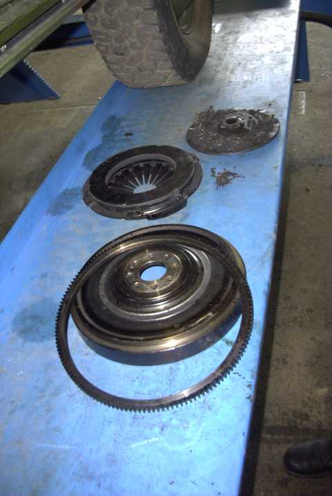 Zahnkranz gelöst | verbrannte Kupplung | Kardanwelle nach Umbau (Oelfuß v. vier) |