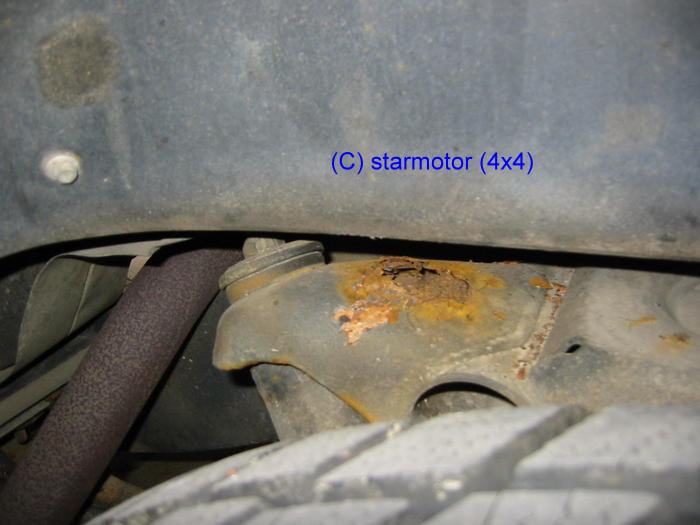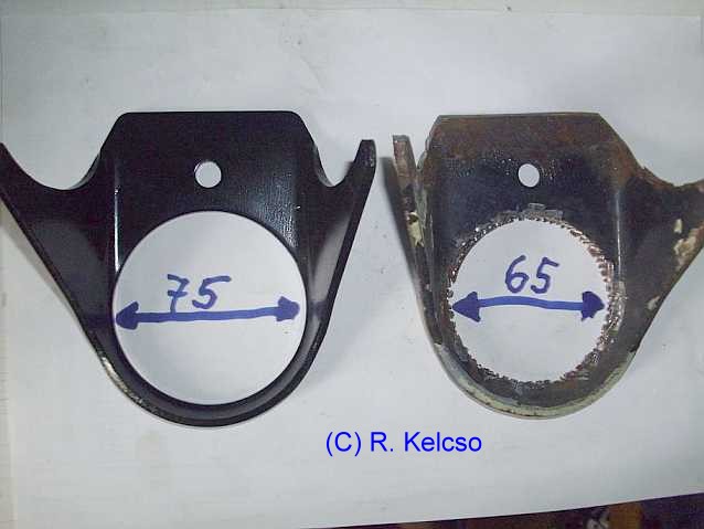 siehe auch Stoßdämpferaufnahme erneuern beim 280GE Sie ist am oberen Rahmenquerrohr angeschweißt (siehe auch Stoßdämpfertipp). Nach dem Anschweißen bohrt man ein Loch, z.B. 10 mm, (roter Pfeil, 2. Bild) und konserviert innen. Bei DC gibt es passende Gummistöpsel. Nach Jahrzehnten ohne Konservierung rosten die Halter oben durch. |