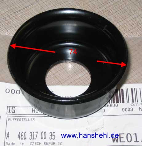 Das Stanz-Neuteil ist sehr scharfkantig! Man sollte also vor dem Grundieren die Kanten runden, da sonst dort sofort der Rost zuschlägt (kein Farbauftrag!). Federteller (Federblatt?): A4603240315 |