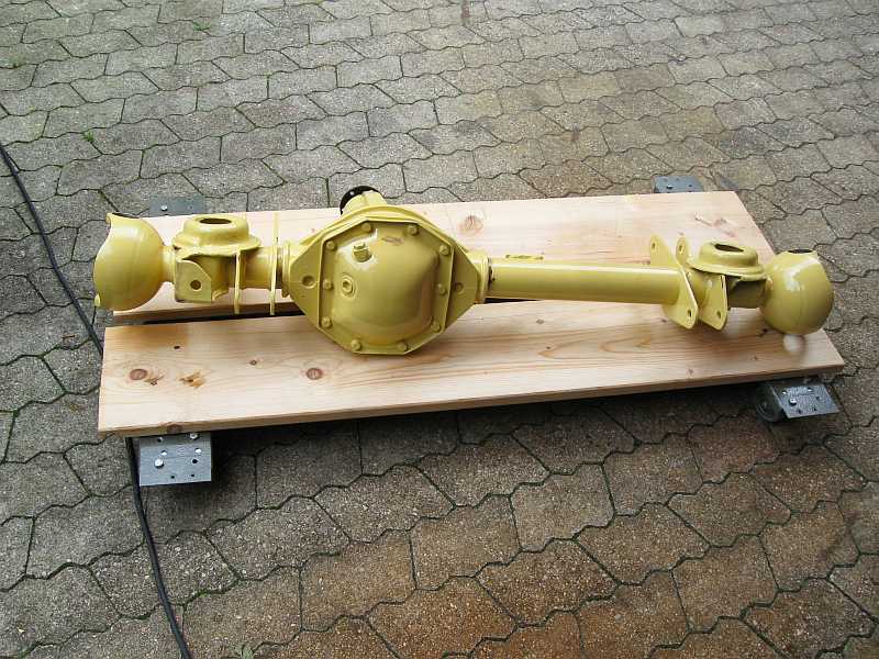 Nach dem Einschieben der Steckachsen werden die Achsgehäuse mit den Achsschenkeln/Lagern) aufgesetzt und Lenkstockhebel (Achse rechts) und Spurstockhebel (Achse links) angeschraubt. Drehmomente der Schrauben beim 240GD (10/1979) siehe hier. |