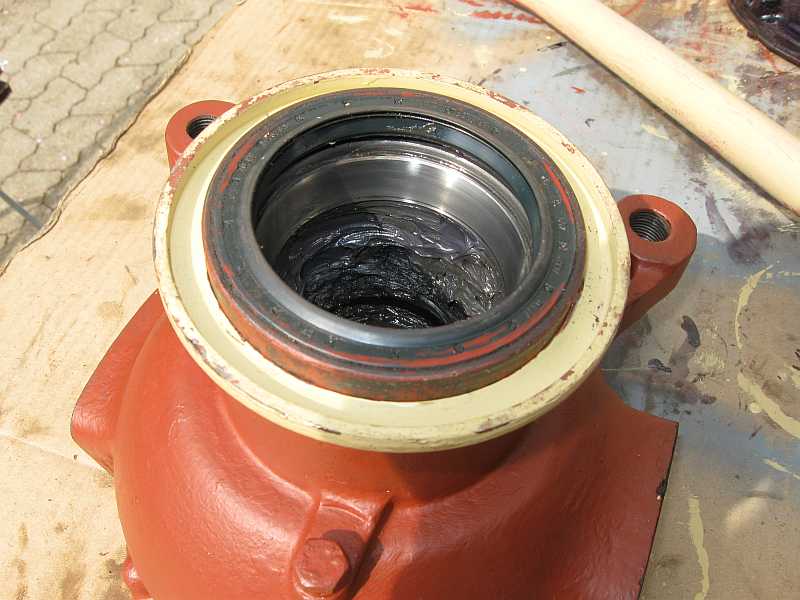 Der alte NBR-Dichtring 32x3mm der linken Gelenkwelle wurde durch einen FPM-Viton-Ring ersetzt. zur Restauration 2014 Teil 2 |
