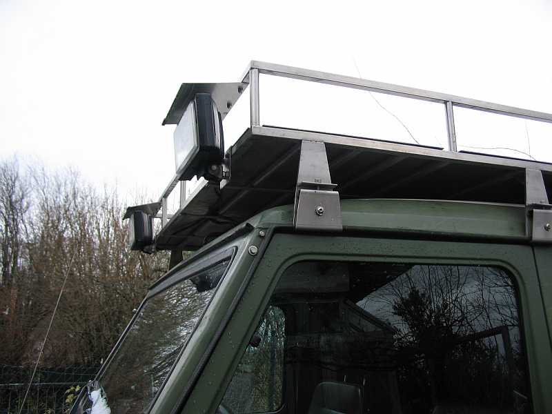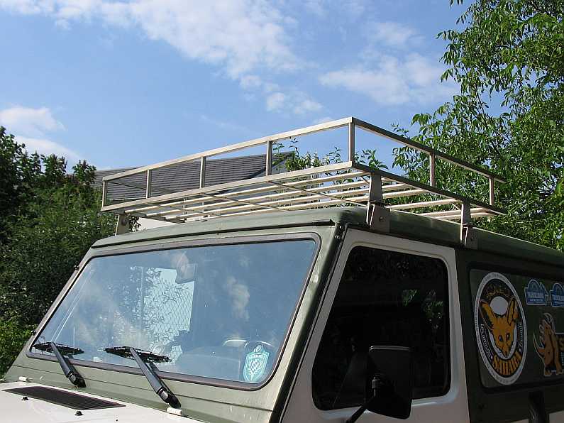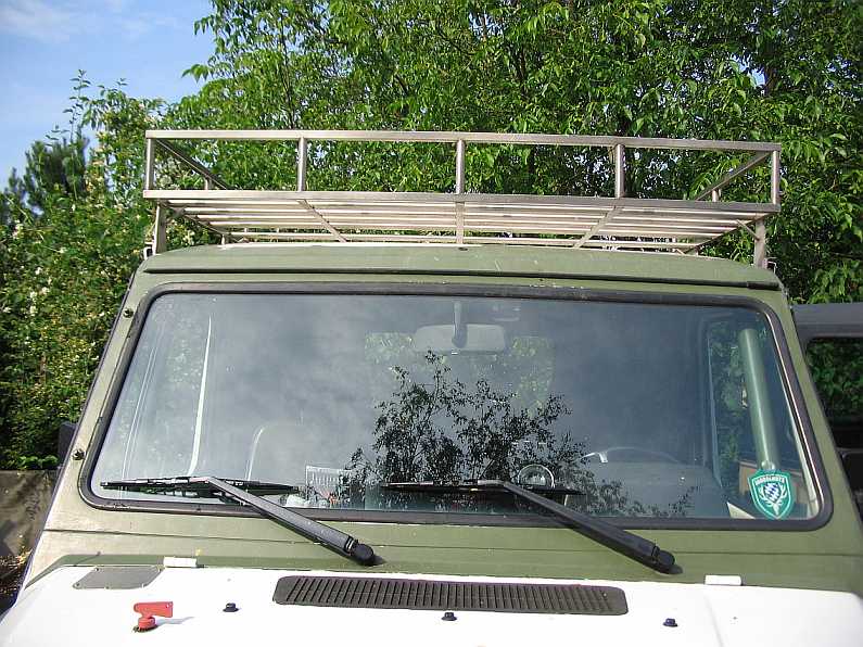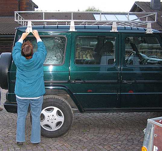 | Noch auf dem G270CDI habe ich den Dachträger in der Mitte durchgesägt. Eine Hälfte passte auch auf das Dach vom Geländewagen mit kurzem Radstand. | ![]() |