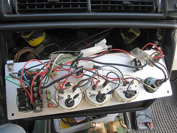 Zusätzlich wird aber ein Relais eingebaut, um Stromstärke und Kabelquerschnitt zum Schalter im Armaturenbrett klein zu halten. |