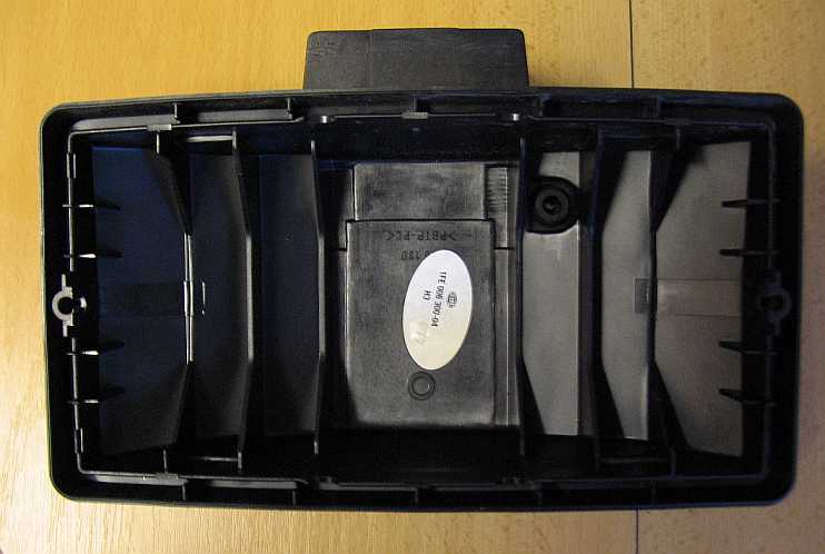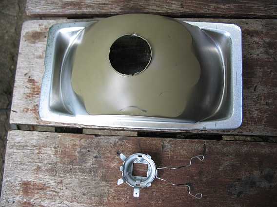| Beim ersten Unwetter zeigt sich, dass der Scheinwerfer nicht wasserdicht ist, das Glas beschlägt innen. Also muss er oben abgedichtet werden. Mit Silikon habe ich den Plastikrahmen mit dem Schweinwerfereinsatz verklebt. Ein schwarzes Klebeband dichtet oben und an den Seiten den Spalt zwischen Gehäuse und Rahmen ab. Auch die Abdeckung über dem Schweinwerfer war notwendig. | ![]() |