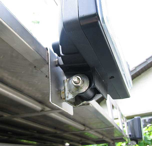 | So kann der Scheinwerfer nicht vibrieren. Der Winkel hält auch die Alu-Bodenplatte. | ![]() |