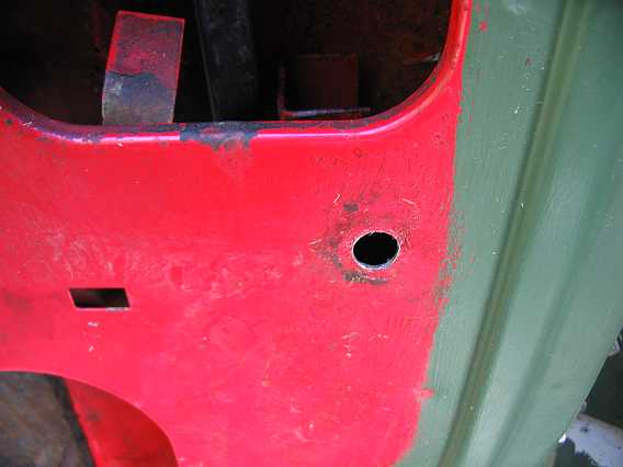 | Das 24 mm-Loch für den Gummibalg für die Lautsprecherleitung ist auch schon mit dem Stufenschälbohrer gebohrt (siehe Türlautsprecher beim 280GE). | ![]() |