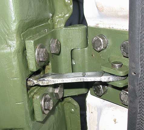 | Am oberen Scharnier baute ich den neueren Türhalter ein, da es die neuere Scharnierversion mit der Aufnahme für den 8 mm-Bolzen war. | ![]() |