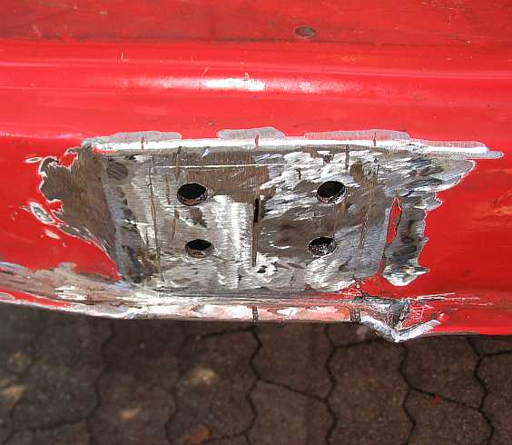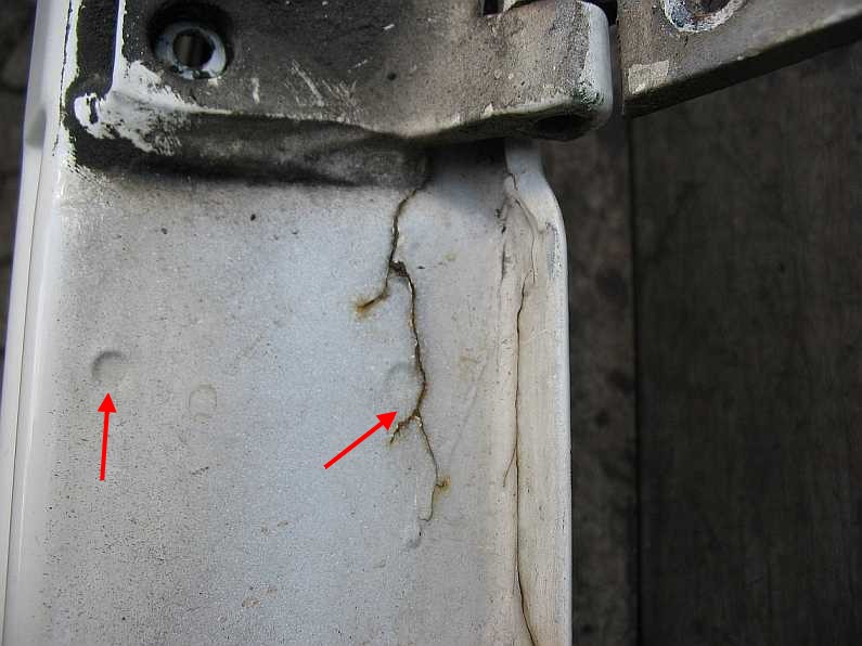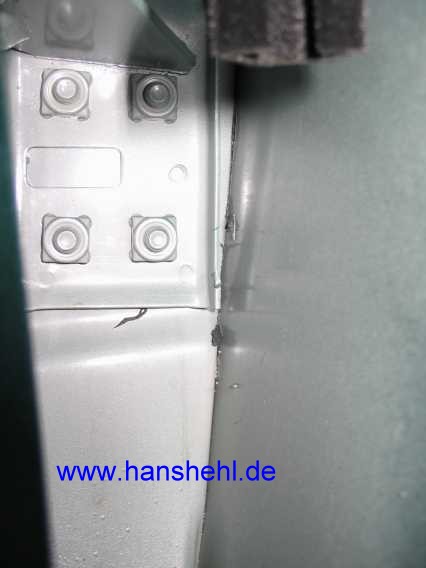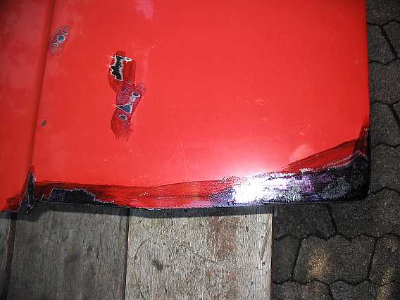 | An den Türen sind, seit es den G gibt, immer die gleichen Stellen angerostet (falsche Konstruktion). Am Türrand muss man den unterrosteten Falzrand wegflexen (2.Bild). | ![]() |