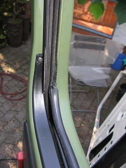 Das neue Abdichtband A0029892098 wird aufgeklebt. Der Fensterrahmen A4607250056 ist mit kleinen Senkkopf-Blechrauben an der Tür angeschraubt. |