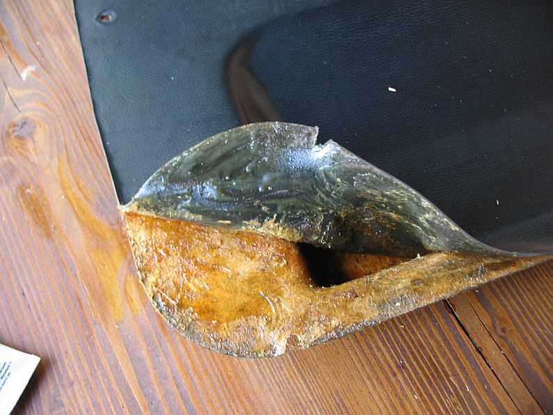 | Die Anlageflächen der Scharniere an der A-Säule wurden zuerst mechanisch und dann chemisch mit Brunox entrostet, grundiert und oliv gestrichen. | ![]() |
