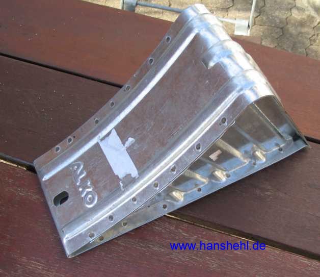 Bei Westfalia.de im Shop Landwirtschaft gibt es stabile und sehr preiswerte Unterlegekeile (Nr. 602391) aus verzinktem Stahlblech (1600 kg Radlast), da kann man gleich zwei nehmen. Es gibt auch noch einen stärkeren Unterlegkeil für 5 to Radlast. |