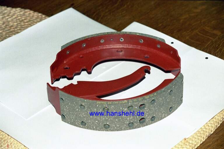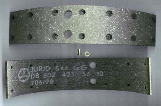 Bremsbeläge kann man aufnieten, benötigt aber dazu einen Nieteinsatz, einen Auftreiber und ein bischen Übung. Das Werkzeug kann man kaufen, aber auch selber machen. Neue Bremsbacken mit Belag selber sind sehr viel teurer (A4614200020, 4 Stück. Sie sind dann aufgeklebt. Stand 7/2014: nicht mehr lieferbar Eine ausführliche Anleitung zum Aufnieten der Beläge ist im tipp13d.htm |