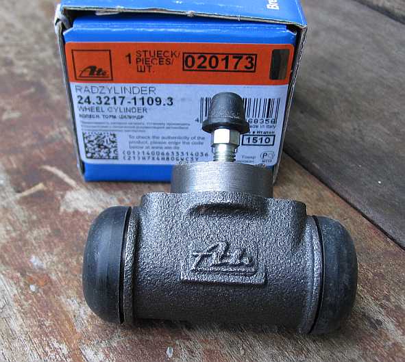 Im Zubehörhandel gibt es den Radbremszylinder von ATE 24.3217 - 1109.3 . Man sollte ihn vor dem Einbau konservieren. Ich verwende Brunox. |