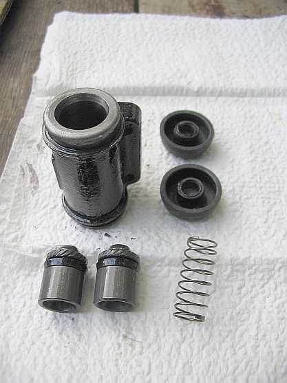 Vor dem Einbau Druckkolben und Manschetten mit Bremszylinder-Paste schmieren. Der Bremszylinder sollte innen spiegeln, sonst mit sehr feinem Schmirgelpapier (Körnung 600) polieren. Sind Rostnarben da, hilft nur ein neuer Bremszylinder! Auf keinen Fall Fett oder Öl verwenden (auch keine sogenannte Bremsenpaste!) Wer genaueres über Bremszylinder-Instandsetzung wissen will, schaue mal ins Mercedes-Benz-Forum rein. |