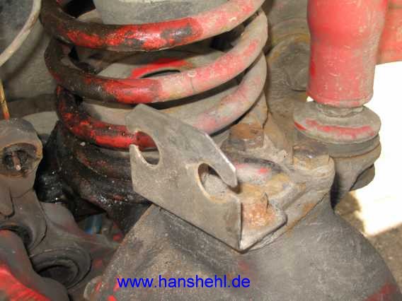 Der Blechwinkel für die vorderen Bremsschläuche oben auf dem Achsgehäuse wird aus 2mm Edelstahl angefertigt und